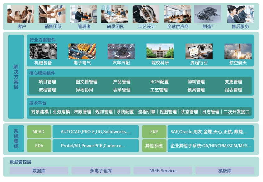 为了达到此目标,产品生命周期管理系统的建设势在必行。为实现以产品结构为核心的数据管理模式,集中统一管理产品全生命周期过程中产生的各种产品数据,确保数据的准确性和一致性,提高产品数据信息重用水平,为研发、生产、服务等部门提供准确、完整的数据,以提升产品质量,建立集团级的协同统一管理平台尤为重要,实现产品数据与业务的匹配和协同。